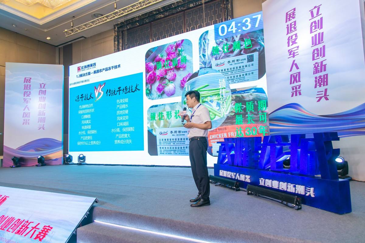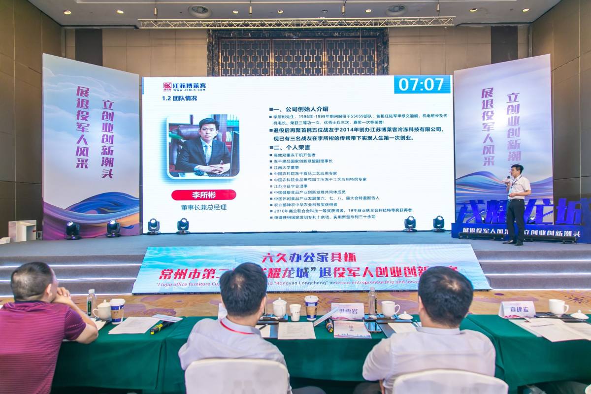 2021.9.29江蘇博萊客冷凍科技發(fā)展有限公司,董事長(zhǎng)李所彬先生,參加常州市退役軍人創(chuàng)業(yè)創(chuàng)新大賽路演。場(chǎng)面恢宏,現(xiàn)場(chǎng)氛圍熱烈。