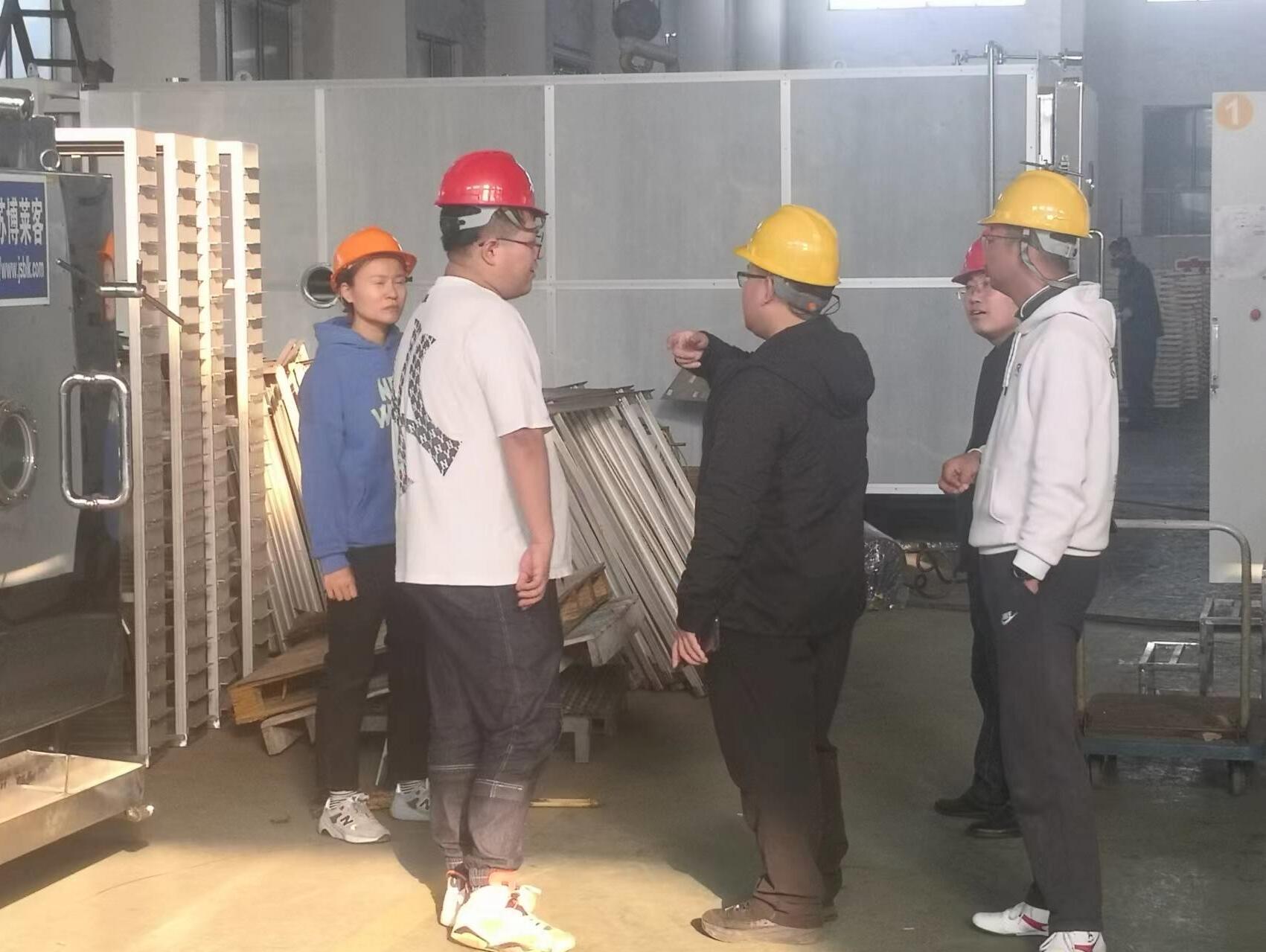 2022年10月12日,昆山賓總及其公司團(tuán)隊(duì)來(lái)廠考察凍干設(shè)備。在銷售部陪同下,走訪車間了解設(shè)備生產(chǎn)過(guò)程及相關(guān)技術(shù)工藝,并帶來(lái)公司樣品做產(chǎn)品試驗(yàn),同時(shí)洽談設(shè)備訂購(gòu)合作。