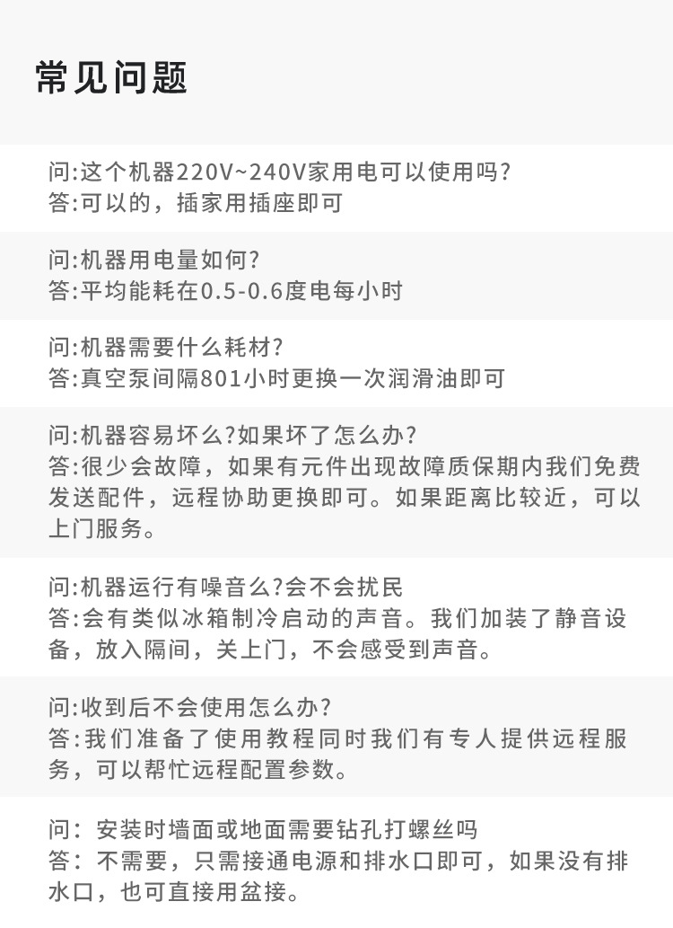 5、噪音低:我司設(shè)備為一體式設(shè)計(jì),配件制冷機(jī)組、真空泵均為內(nèi)置安裝(同行產(chǎn)品設(shè)備均為外置機(jī)組或真空泵,使用不便還噪音大),并且內(nèi)部設(shè)有消音棉,隔音效果好。